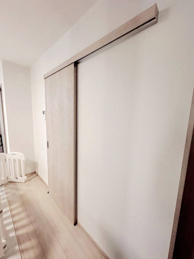 垂れ壁を造作し、垂れ壁部分にはLDKと同じクロスを張っております。
