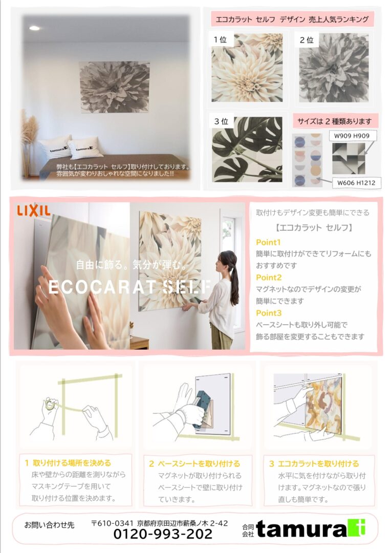 エコカラットセルフは、DIY感覚で簡単に取り付けする事ができ、少し部屋の雰囲気を変えたい時など模様替えの1つとなるのでおすすめです!